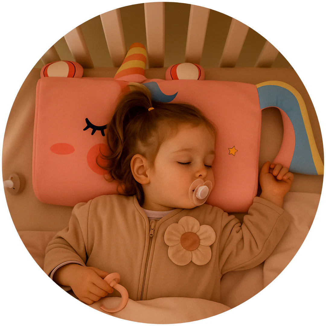 Poduszka pomaga dziecku się wyciszyć oraz zapewnia komfortowe wsparcie dla głowy i szyi - ciało może się rozluźnić.